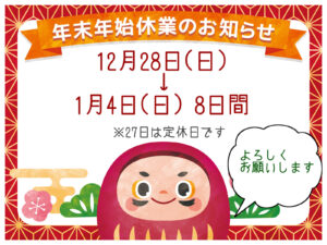 【年末年始休業のお知らせ】